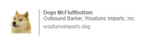 - Straightforward and simple: Keep things simple if you’re going to be silly! Your identity, title, organization, and contact information are frequently required for a commercial context. If that’s the case, a clear sign like this will suffice.