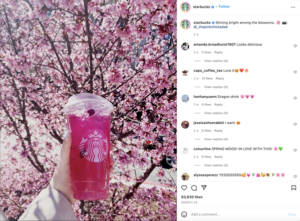 With every change in season, brands have the opportunity to create something unique. And Starbucks hits it out of the park every single time! The ‘What will Spring Bring’ UGC campaign has worldwide appeal.