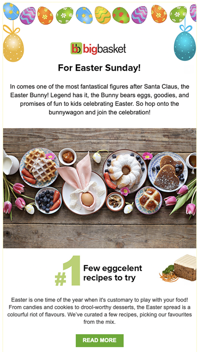 Another occasion wherein you can plug in more content from users is during festivals. Indians love holidays. Bigbasket does it right by adding a recipe contest for customers. They recognize and honor community content and increase the number of mentions. The brand actively curates content shared by customers, partners, and stakeholders while encouraging others to participate too!