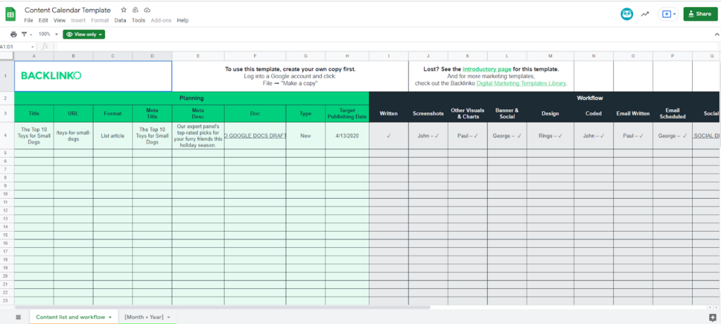 3. Backlinko Content Calendar Template