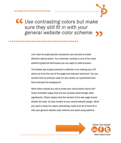 One of the important elements of a well-designed ebook is that it includes a clear CTA (call to action). Since it is a marketing ebook, a call to action is essential as it will lead the reader from the awareness stage of the marketing funnel to the evaluation stage.