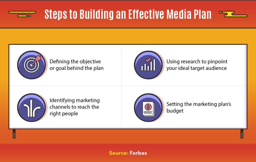 Some essential steps of building a healthy media plan are setting objectives, analyzing the target audience, determining the deadline and the timings of the ad, and choosing the media channels.