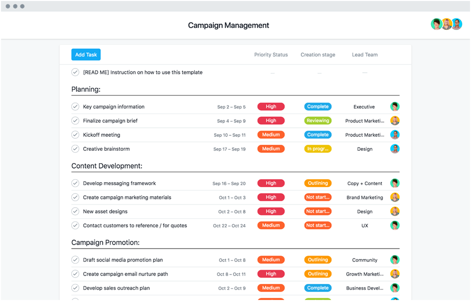 Asana is a project management channel. On Asana, you can invite people across your organization to join the media planning process; this keeps everyone in the loop of what’s happening and makes their efforts streamlined.