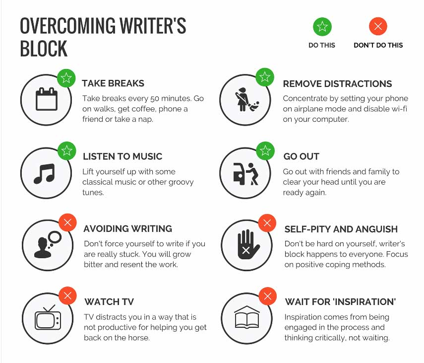 - A situation in which an author cannot generate new ideas, work, or experiences can be described as a mental block to creative thinking. If left untreated, it can prohibit you from writing for days, weeks, or even months.