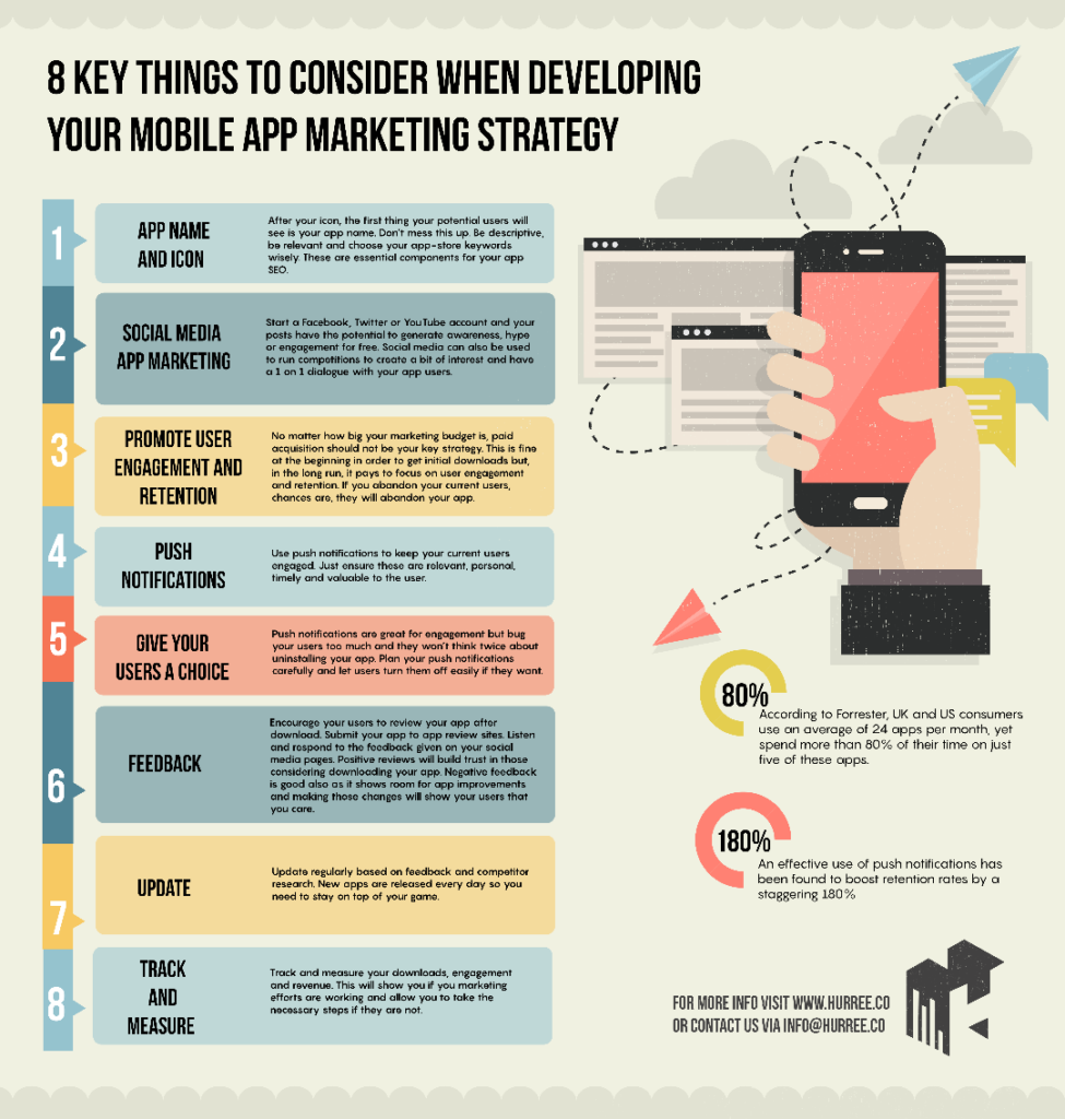 This form of marketing is a continuous process where you acquire new customers using the five stages mentioned above and ensure long-term engagement. Mobile app marketing has become relevant today because more than 65% of small businesses have their dedicated mobile app, and there is serious competition.