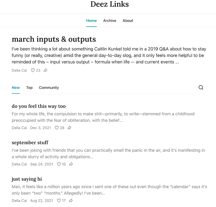 With topics ranging from the latest TikTok videos to celebrity interviews, Deez Links also has a classifieds section where, in collaboration with Study Hall, subscribers can discover pitch calls, new projects, and other writing opportunities.