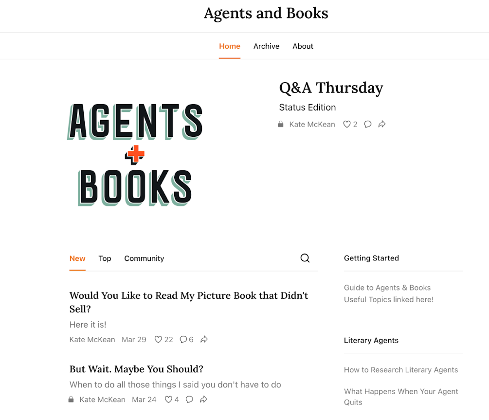 Did you always want to be a published author but don’t know how to go about it? Agents and Books is a newsletter by the teacher, literary agent, and writer Kate McKane like a one-stop-shop for all your needs.