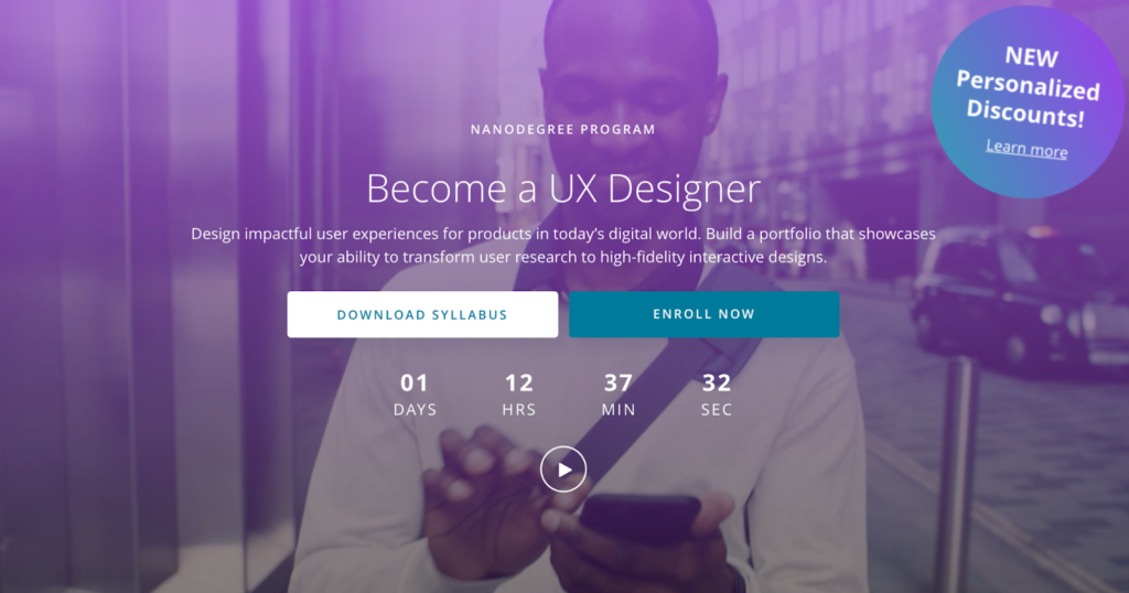 This Nanodegree program in User Experience Design covers UX foundations and design research. You will be able to go from concepts to low-fidelity prototypes and from prototypes to high-fidelity UX designs once you have completed the program.