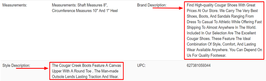 Such similar product descriptions confuse the search engines, reducing visibility for all your pages. Thus, creating unique and distinct product descriptions for each product is recommended. This will help the search engines easily ascertain what the page is all about and show your page to the audience looking for the product.