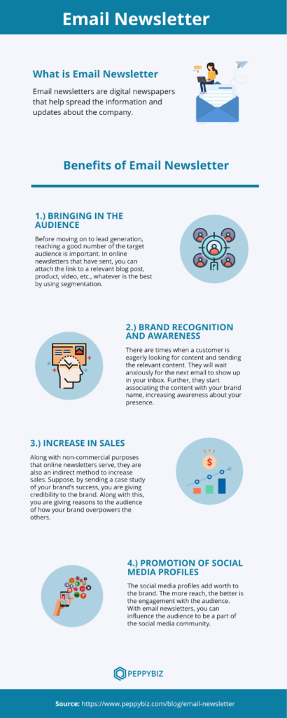 Email newsletters are the best forms of communication for sending news, updates, and handy tips. These newsletters help you stay in constant touch with your audience, and your calls to action will guide them to your website to convert them as customers.