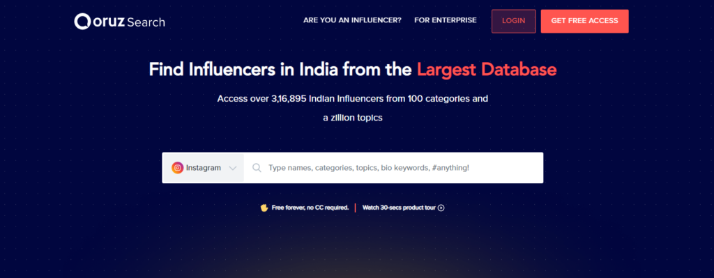 The mega social media influencer database of India, Qoruz showcases itself as an influencer search engine. Brands can search for relevant influencers via search filters for different social media sites. There are more than 300,000 influencers in the Qoruz index, with 100 categories.