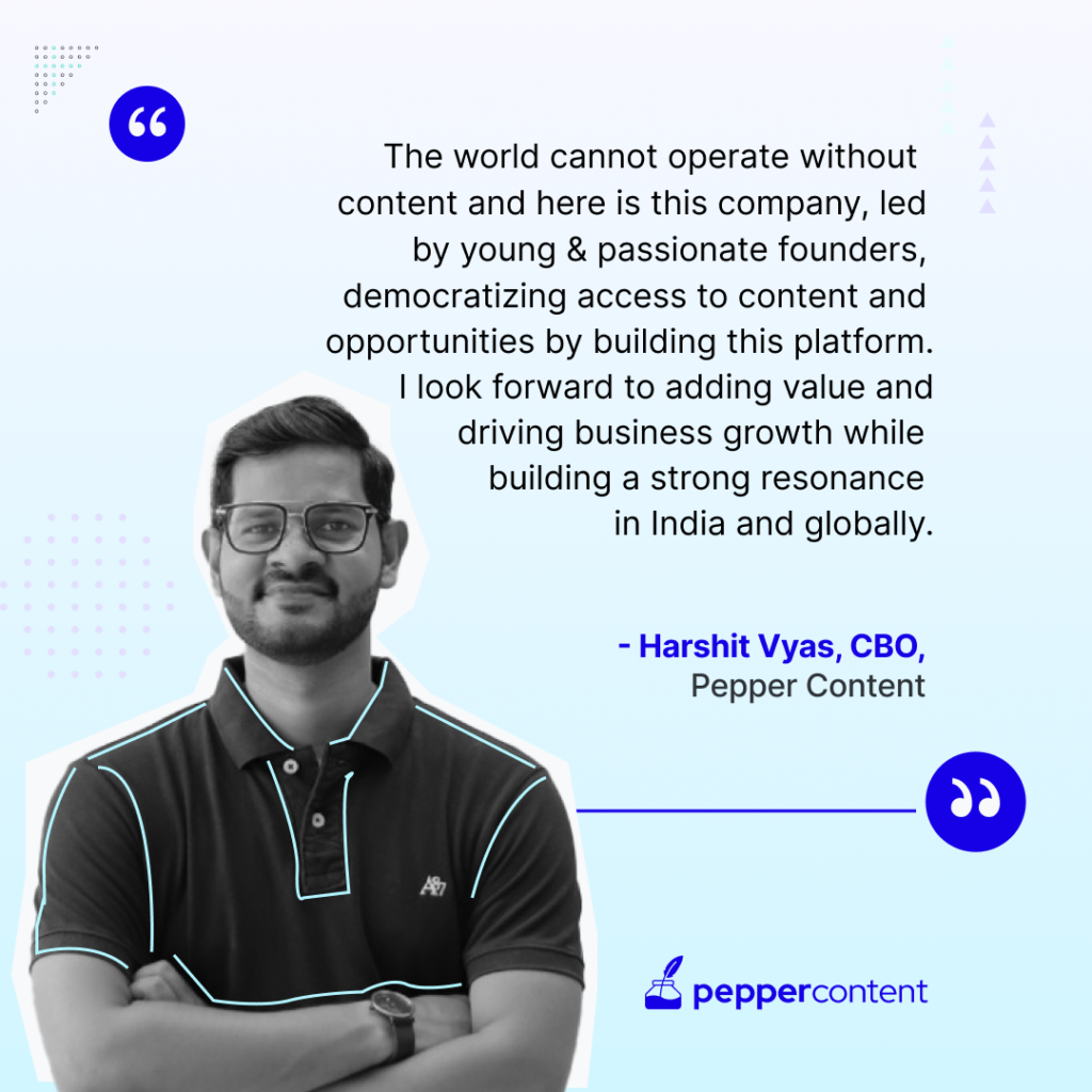 On joining Pepper Content, Harshit Vyas, Chief Business Officer, stated: