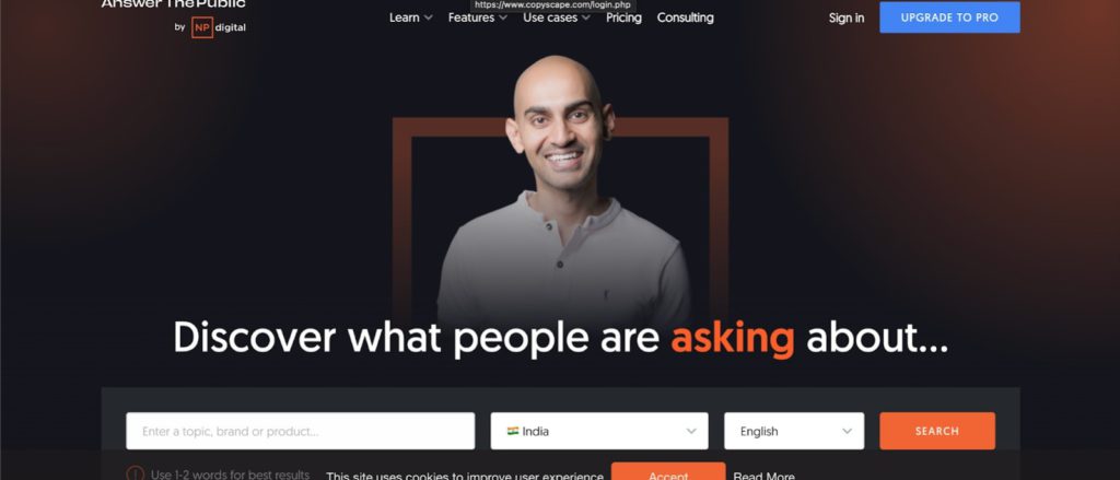 AnswerThePublic is another excellent SEO tool that allows you to find important phrases and keywords that you can use to target your audience.