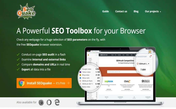 SEOquake must be on the list of top SEO tools for your brand. It’s a powerful SEO toolbox for your browser. You can use this tool to conduct on-page SEO audits, examine internal and external links, and compare domains and URLs in real-time.