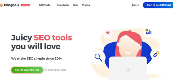 Mangools is an easy-to-use SEO tool for small to medium-sized businesses, bloggers, marketers, and freelancers. KWFinder, SERPChecker, SERPWatcher, LinkMiner, and SiteProfiler are some of the tools available.