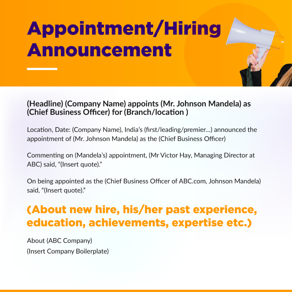 7. New appointment press release template
