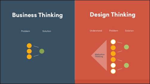 Graphically, we can present the difference between business thinking and design thinking as below: