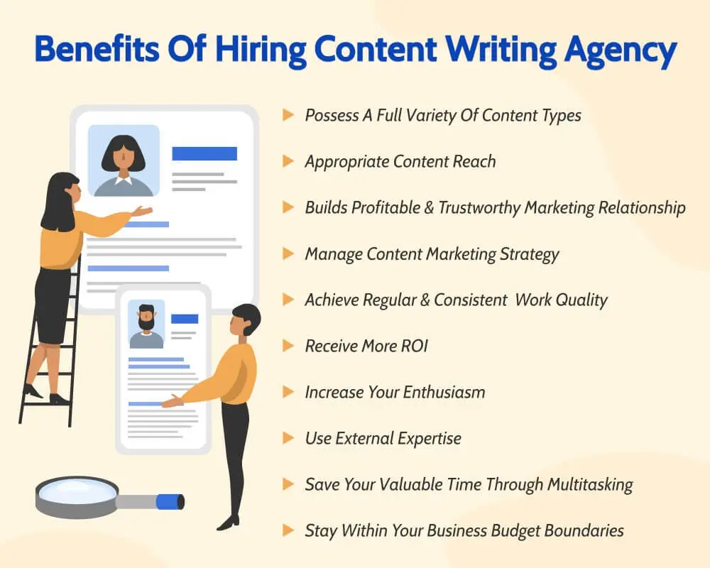 - It is difficult to keep up with the trends coming up in the content writing sphere. A content writing agency can help you not only keep up with those trends, but also incorporate them in your strategy.