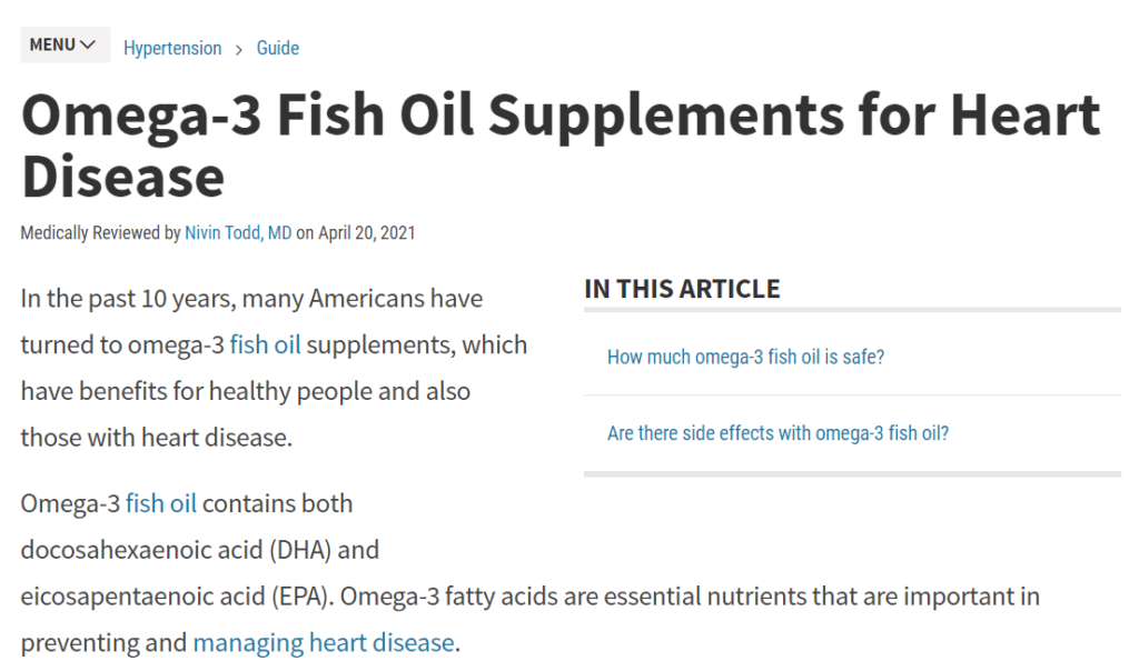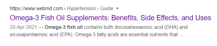For example, here’s a title that appears from WebMD for the keyword “omega 3 supplements”: