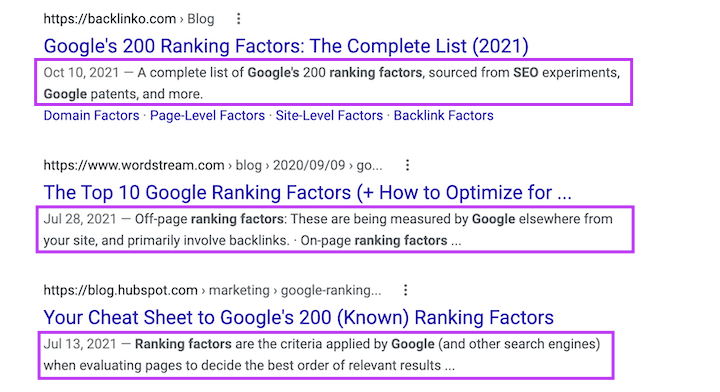 Below are some specimens of meta descriptions (highlighted in purple).