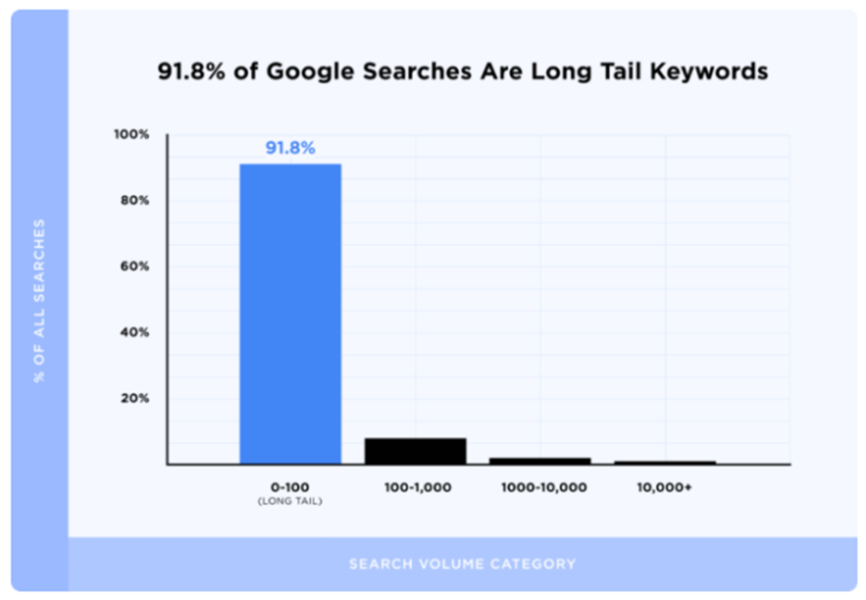 According to a report, 91.8% of all searches are long-tail keywords.