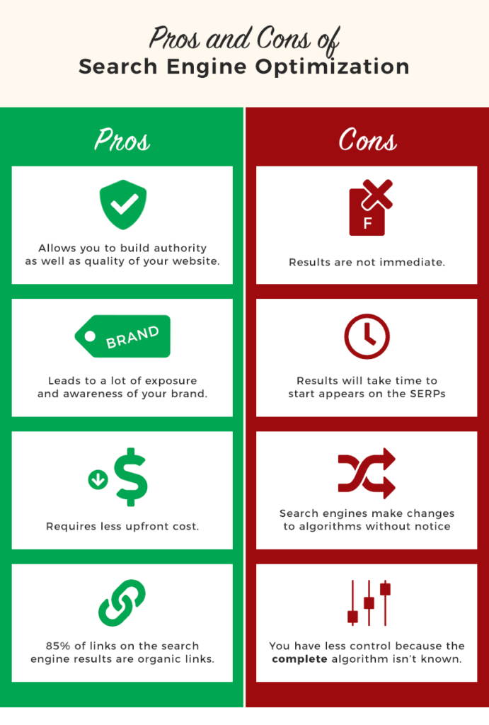 SEO has pros and cons, even though it is often regarded as one of the most effective strategies for achieving better rankings with Google.