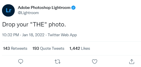 Here’s the official Twitter account of Adobe Lightroom, asking its followers to participate in a thread. Such initiatives encourage engagement and keep the audience coming back for more.
