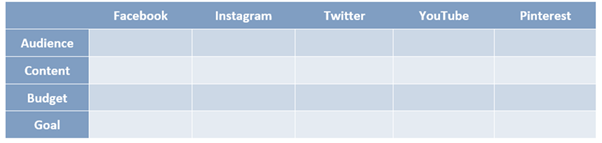 The first content matrix element is to choose the right social media platform for your business. You would need to decide which platform you would like to use. You can choose from different platforms like Instagram, Facebook, Pinterest, YouTube, Twitter, and Snapchat. Once you decide on this, list them down when planning your marketing strategy.