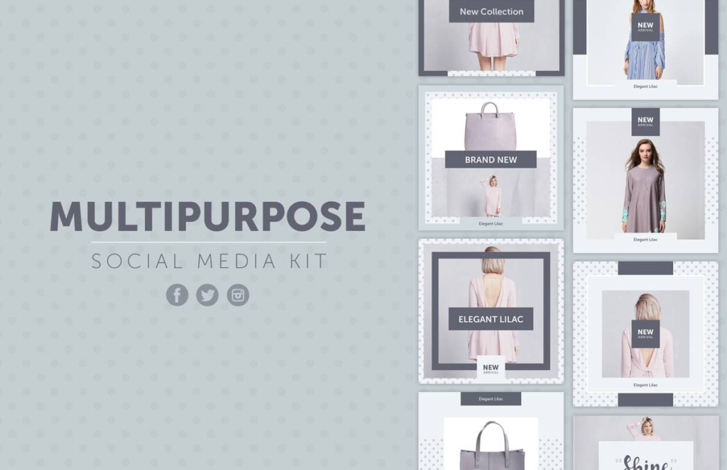 This multipurpose social media kit is done by designer Diego Sanchez. As a compact social media graphic template, it is apt for Facebook, Instagram, and Twitter. With eight compact yet impactful designs, this kit works well for designers, brand managers, and digital marketers.