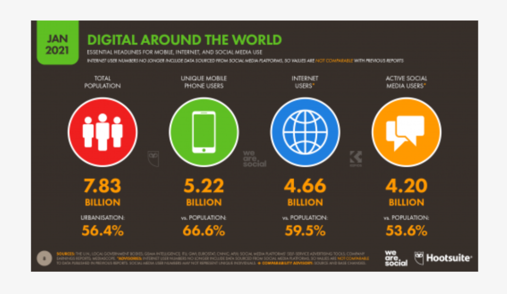 - Social media users stand at 4.20 billion, about 53.6% of the total population. India alone has 448 million active social media users. This is the best time for small businesses to utilize the magic of social media marketing to build brand awareness.