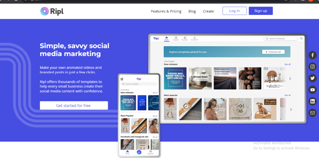 If you want to simplify all of your social media tasks, this is just the platform for you. With a 7-day free trial and plans starting at $14.99, you can access readymade templates, brand management tools, customizable content creation tools, performance tracking and optimization tools, social media sharing tools, and mobile and desktop support. As reported by Ripl, 4.5 million small businesses already use their products for all their social media platforms.