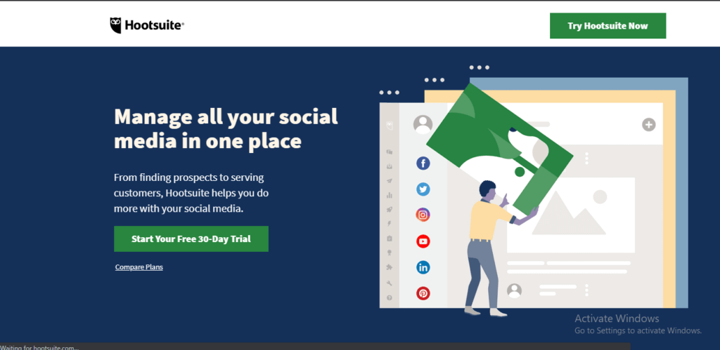 Hootsuite is a go-to tool for most businesses today. The reason for its popularity is that it’s an all-in-one platform that lets you curate and plan content, track social ROI, execute social media marketing, and do a lot more, all under one roof.