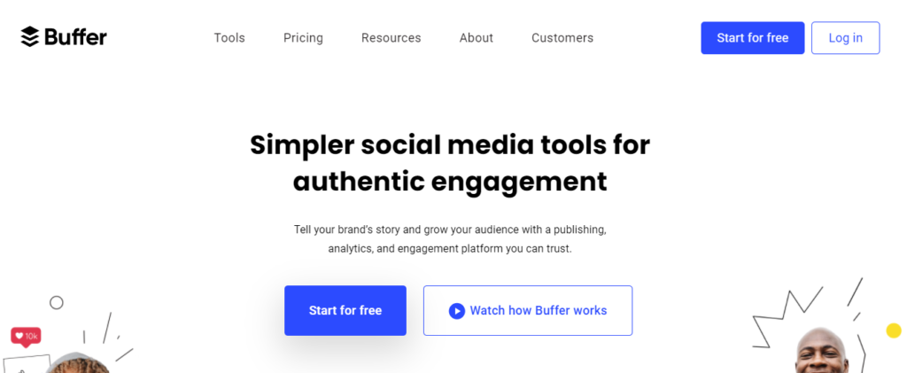 A social media management platform made for small businesses, Buffer is a convenient and straightforward social media management tool trusted by more than 75,000 companies, including Shopify, Spotify, Food52, etc.