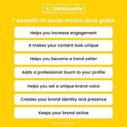 ● The benefits of a social media style guide are that it provides brand credibility; new joiners shall be able to quickly pick up the instructions from the style guide without any work interruptions or delays.