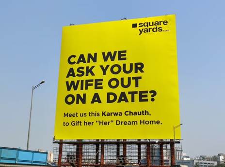 In this ad copy, the brand asks if they can take your wife on a date but to show her ‘her’ dream house. And they also request the husbands to meet the Square Yards people on Karwa Chauth to gift her their dream home.