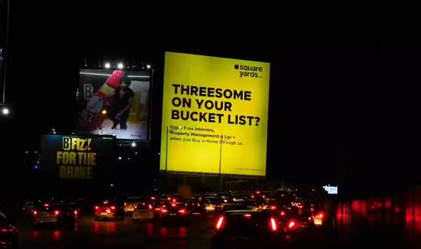 ‘Threesome on your bucket list?’ The phrase is double meaning humor of Square Yards, which encourages the public to stop and stare at it. They try to attract people through their humor to visit the Square Yards website, and maybe they have even succeeded at it.