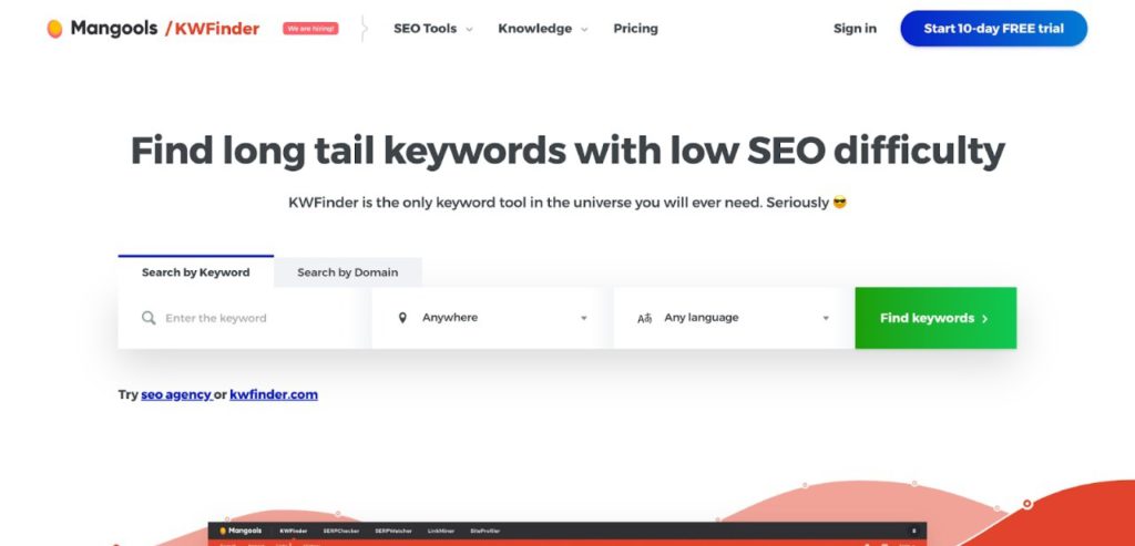 KWFinder is one of the best SEO tools for beginners, which helps you find long-tail keywords with low competition levels. SEO marketing professionals use this tool to identify the best keywords. They can also run analysis reports on SERPs and backlinks.