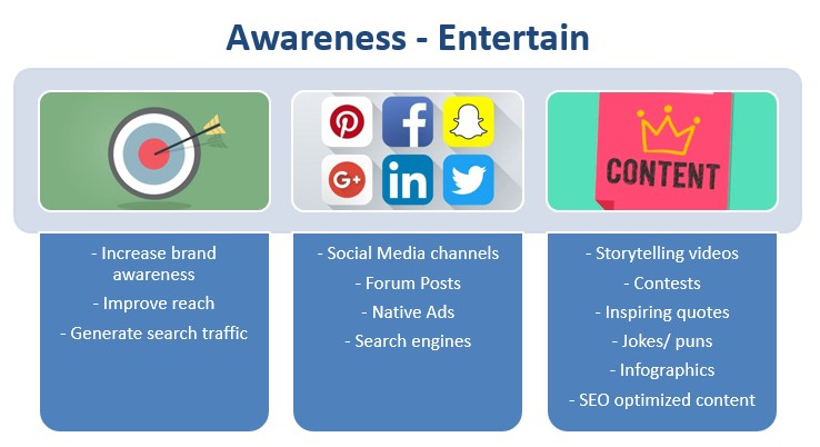 - At the awareness stage, potential customers are not aware of their problem or the solution. The content strategy should focus on educating and providing valuable information.