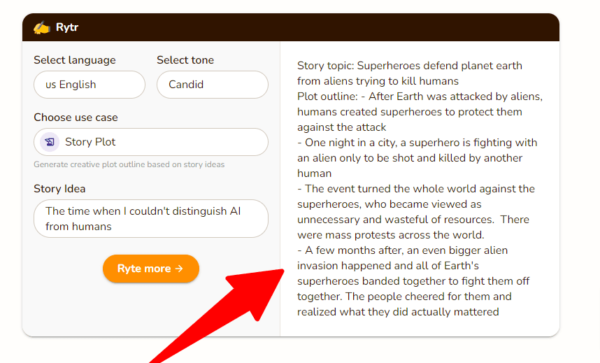 - You can specify the genre, style, length, and other parameters of the story you want Rytr to generate.