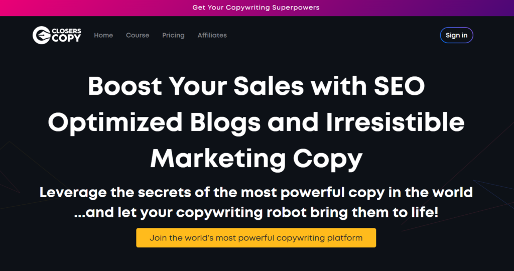 ClosersCopy is a unique AI-powered content generation tool that helps you in generating new ideas, characters, and storylines, including dialogues. Unlike other AI tools, it uses neural networks trained by expert writers to improve its output.