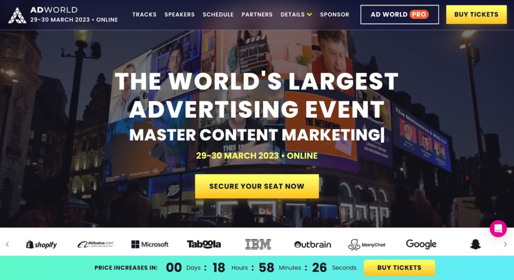 Ad World is an all-in-one marketing and advertising event that will attract global marketing and advertising professionals. It is an online event content strategy featuring some powerful speakers like TikTok’s Sofia Hernandez, Accenture’s Ian Maskell, and Akimbo’s Seth Godin.
