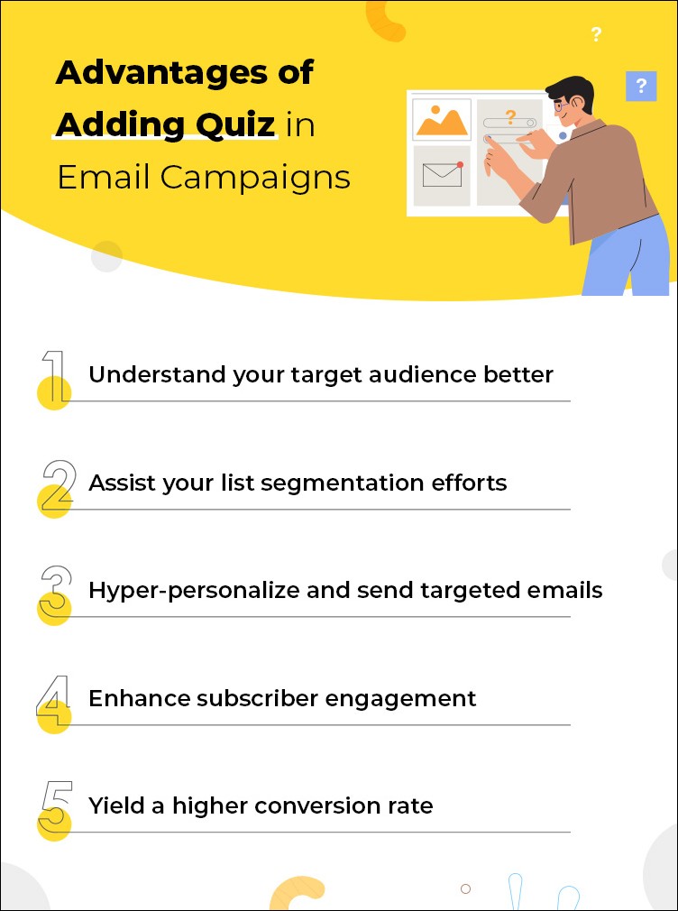 You can add numerous themed quizzes for celebrations, events, subjects, etc. The goal is to persuade your readers to be constantly engaged with your emails and ensure that they open each email that you send from that point onward.