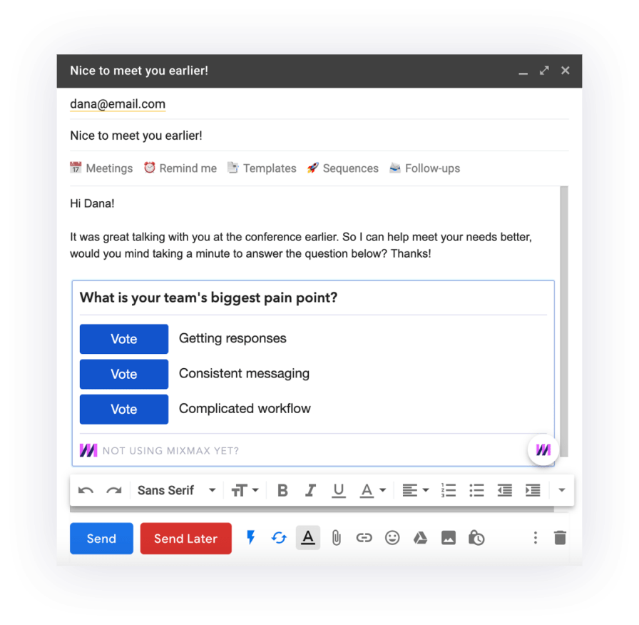 If you are baffled about the type of content you should propose in your next email, you could ask your readers to take the necessary steps by presenting information in a poll.