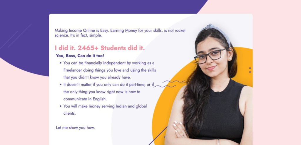 Saheli also runs Freelance 101 Academy where she trains participants in freelancing and how to take it on as a career and be financially independent. Apart from this Saheli hosts various masterclass courses on topics like social media, copywriting, content writing, graphic design and much more.