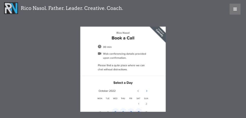 Coaching with Rico is a one-on-one meeting with Rico Nasol. He coaches marketers in his 4Cs program to leadership development. You can start by booking a call with him according to the date and time available.