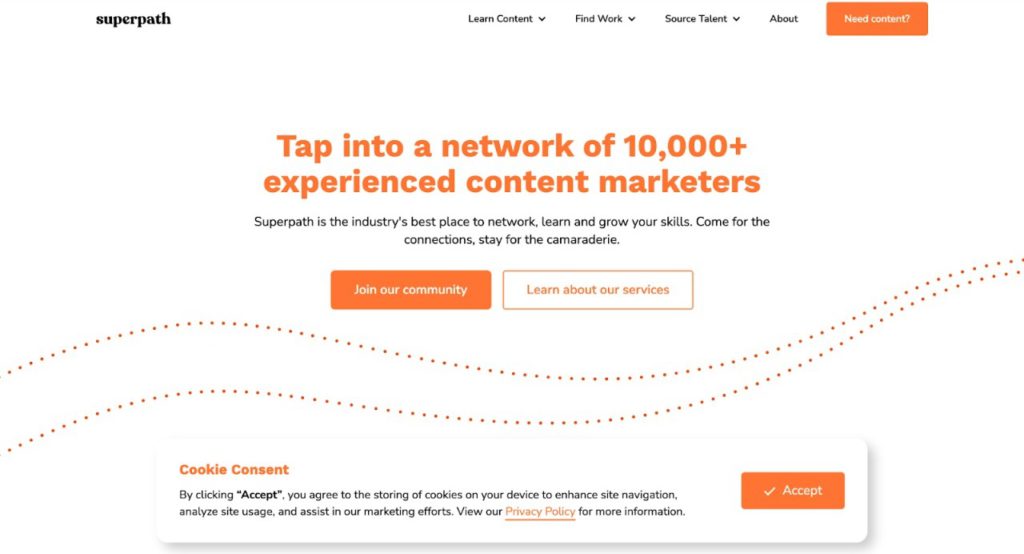 Superpath is a community of 10,000+ content marketers. It is a great place to network, grow one’s skills, and meet like-minded people within your community. You can have conversations and learn from your peers or network and get your content marketing partner.