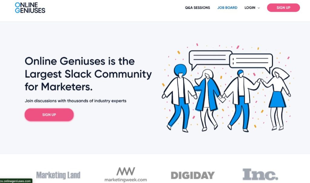 Founded by David Markovich, Online Geniuses is a community of over 38,000 marketers where they can interact with each other to discuss, solve problems and engage in conversations around various topics in the industry including SEO, social media, email marketing, etc.