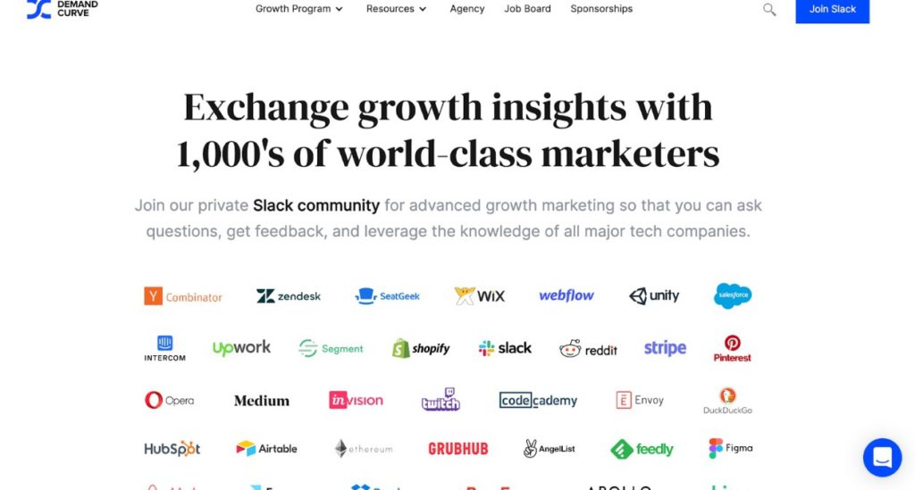 With over 1000 world-class marketers, Demand Curve is a private Slack community with members from top companies such as Salesforce, Unity, HubSpot, and more. You can engage with marketers and experts in the industry, discuss growth tactics, solve growth problems, and more. You can get a chance to engage in various Slack channels such as SEM, Landing Pages, Content and SEO, and more. After applying for membership, your application will go through a 30-day review process.