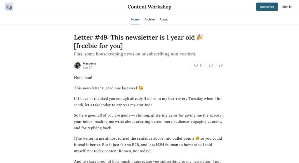 A prolific freelance writer, Masooma Memon writes for B2B SaaS. Her newsletter, Content Workshop, talks primarily about the “How tos” of content and marketing.