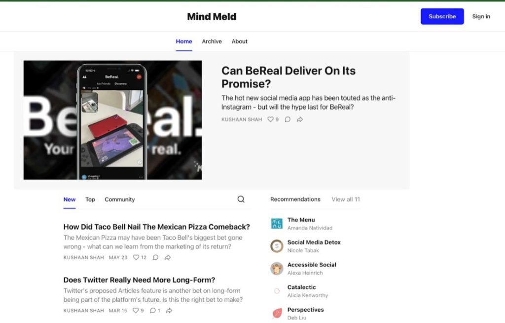 Marketing is all about understanding the human psyche and what drives us to make the decisions that we do. The Marketing Mind Meld newsletter explores the correlation between successful marketing campaigns and human behavior. It has been written by Kushaan Shah who is a growth marketer. Some topics the newsletter provides insight into include what makes memes popular or how scents can impact our purchase decisions.